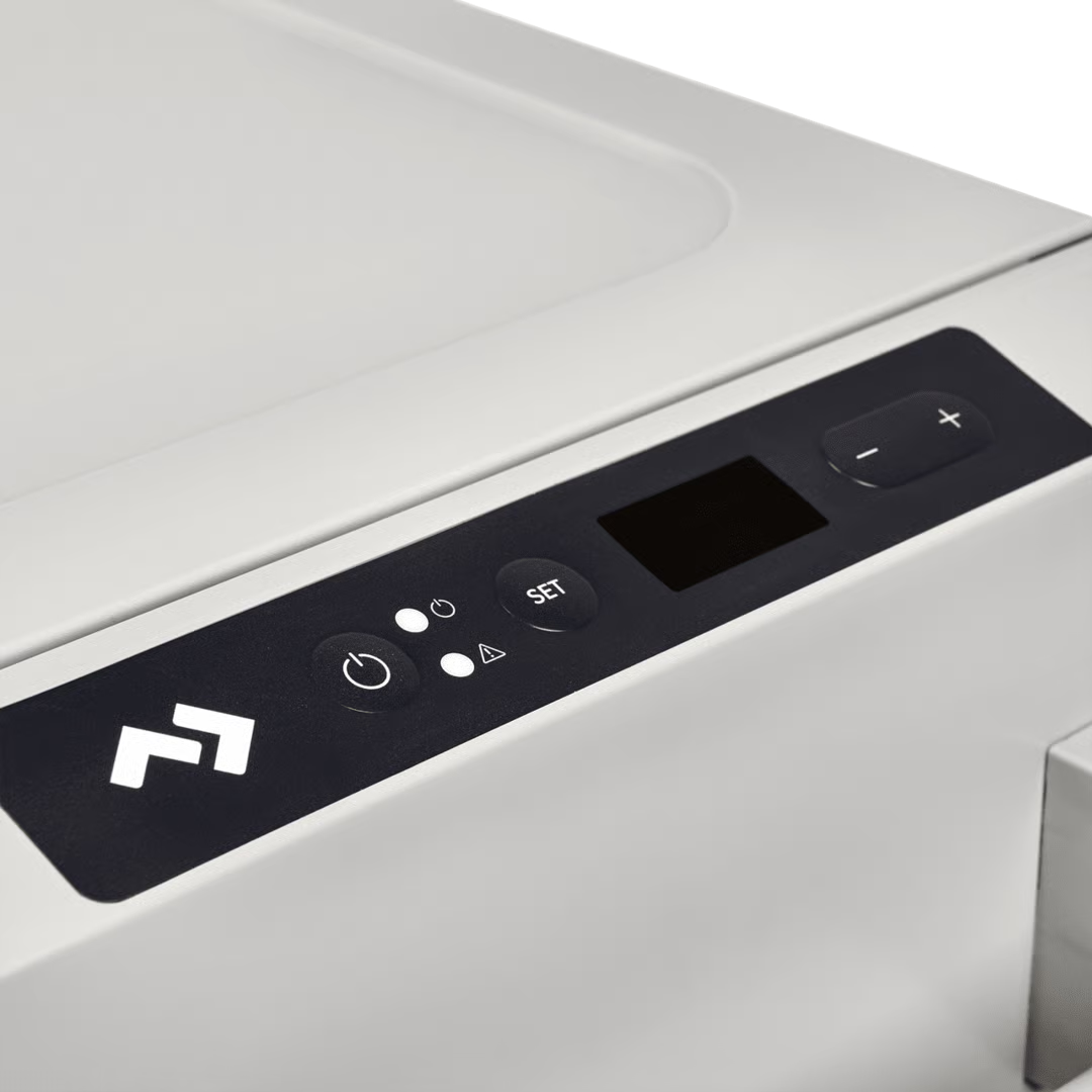 Dankzij de sterke PU-isolatie en efficiënte compressortechnologie levert de CFF 35 uitstekende koelprestaties, zelfs bij hoge buitentemperaturen. De temperatuur is eenvoudig instelbaar tussen +20 °C en −18 °C, zodat je producten altijd op de juiste temperatuur blijven.