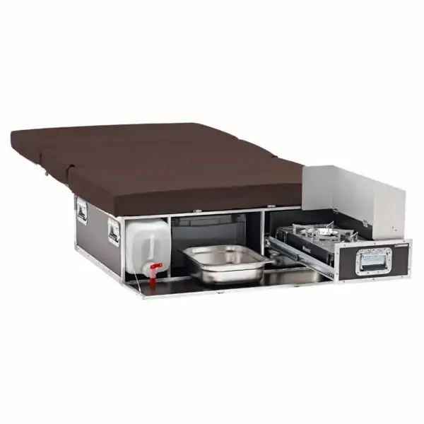 - All-in-one oplossing: De camperbox combineert een keuken, bed en opbergruimte in één compacte module.
